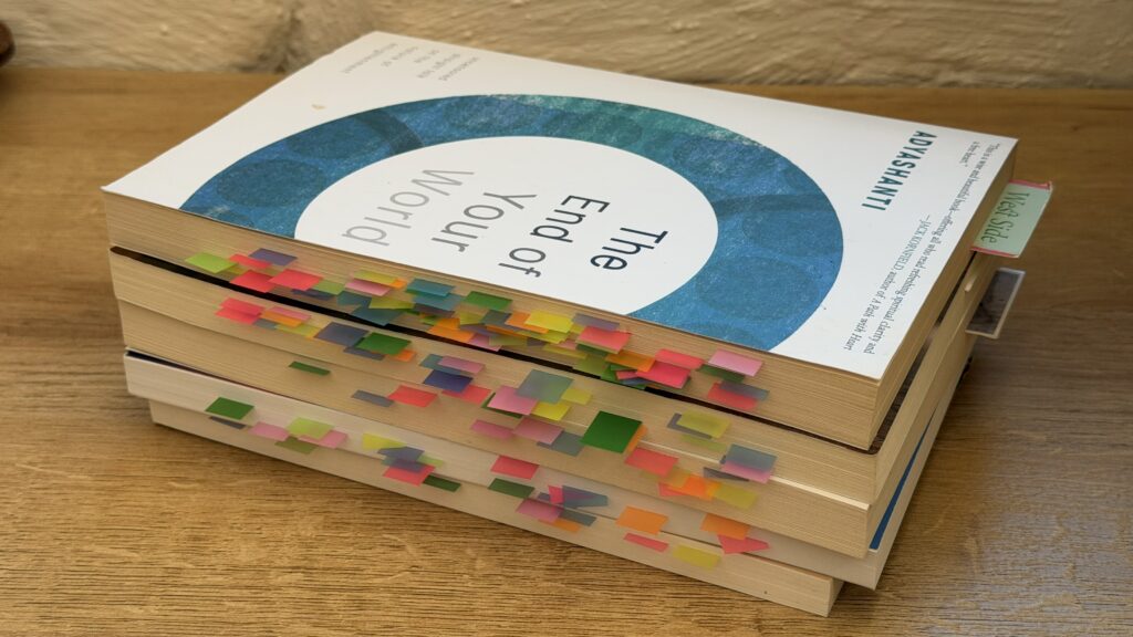 My friend’s simple use of stickers cleared away the mental block and further deepened my reading practice. I wasn’t just reading more slowly and thoughtfully. I was also looking for insights that really hit home and for a way to capture them cleanly. Not so I could return and cram for an exam. To notice. To pause and reflect.